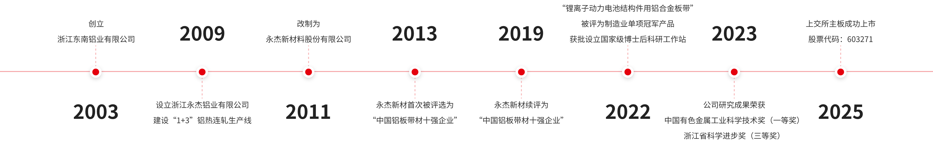 二十余載匠心耕耘,永杰新材于2025年3月11日在上交所上市(股票代碼:603271),先后獲中國馳名商標、“中國鋁板帶材十強企業(yè)”、制造業(yè)單項冠軍產(chǎn)品、國家級綠色工廠等榮譽。公司技術(shù)支撐全面,與中南大學、北京科技大學、浙江大學、中國科學院金屬研究所等國內(nèi)知名院??蒲袡C構(gòu)合作,擁有國家級博士后科研工作站、省級企業(yè)研究院和CNAS認證實驗室。